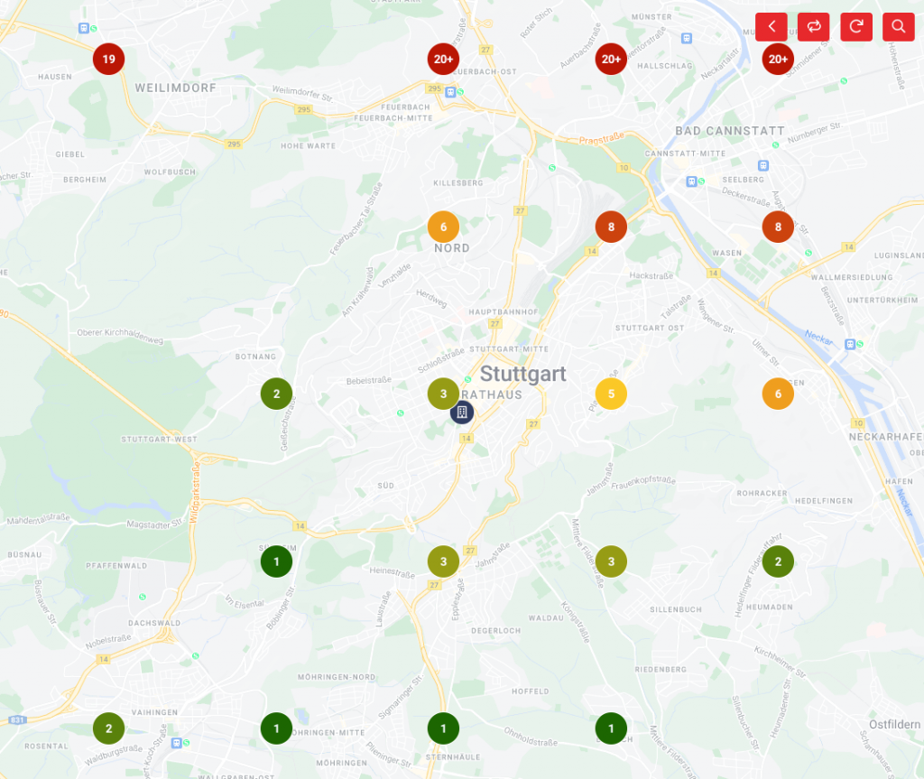 Jeder Kartenpunkt definiert dabei einen gewissen Abstand zu Ihrem Standort.
